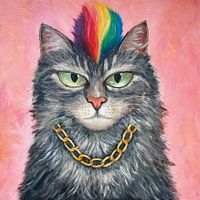 Kat met regenboog hanenkam (QueerCat) van WallCats