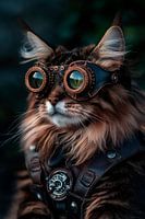 Een majestueuze kater, gehuld in een combinatie van steampunk gadgets en een vleugje avontuur, fascineert met zijn gedetailleerde ogen en sierlijke servies. Deze charmante display brengt een speelse, creatieve energie in elke woonkamer en zorgt voor levendige gesprekken onder gasten.