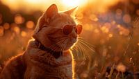 Kat met zonnebril zonsondergang panorama schilderij die een luxe toevoeging zal zijn aan elke ruimte. Met zijn unieke en stijlvolle uitstraling is het een ware eyecatcher. De schitterende kleuren en het bijzondere ontwerp maken dit kunstwerk 100% uniek en origineel. Het is de perfecte fotoprint om je interieur helemaal af te maken.