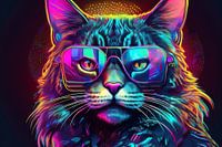 Kat met zonnebril, gekleurd, kleurrijk, digitale kunst, abstract