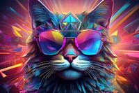 Kat met zonnebril, gekleurd, kleurrijk, digitale kunst, abstract