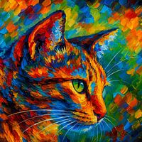 Dit kleurrijke schilderij is gemaakt door Johannes H., een veelzijdige kunstenaar die werkt met zowel visuele, digitale als traditionele technieken. Het schilderij is in olieverfstijl gemaakt met ruwe toetsen