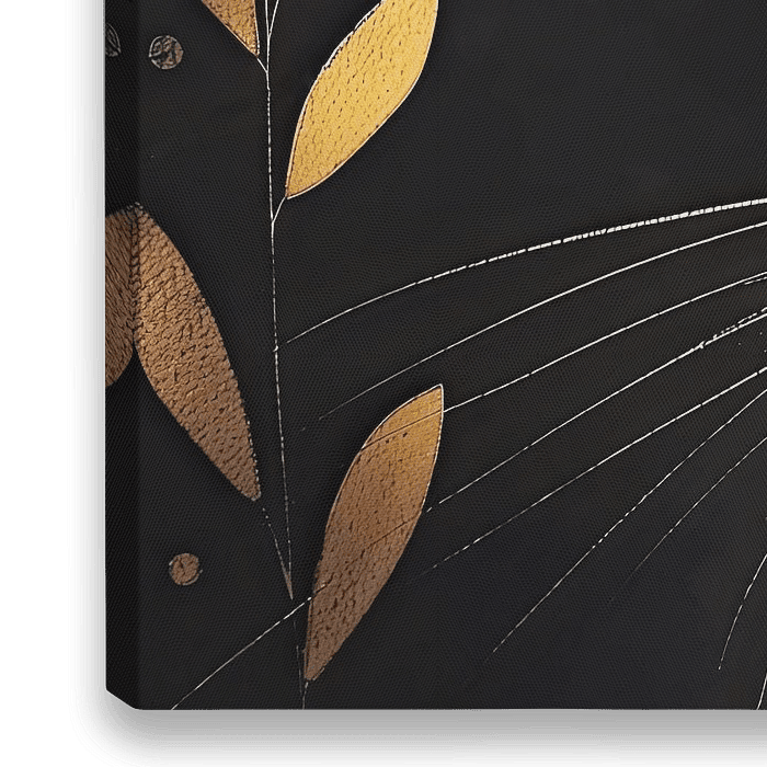 Een stijlvolle schilderij van een zwarte kat, weergegeven tegen een contrasterende achtergrond van zwart en wit met subtiele textuur. De kat heeft een elegante en mysterieuze uitstraling, met gouden bladeren en lijnen die het kunstwerk een luxe en verfijnde sfeer geven. Perfect voor moderne interieurdecoratie en kunstliefhebbers die op…