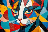 Dit kubistische kattenportret combineert felle kleuren en geometrische vormen tot een levendig kunstwerk. De dynamische kleurblokken en gedurfde lijnen vangen de essentie van de kat op een moderne, abstracte manier. Dit schilderij is ideaal voor liefhebbers van abstracte kunst en kubisme en brengt energie en stijl in elke kamer. Het is een perfecte toevoeging aan je huis of kantoor dat zowel kunst- als kattenliefhebbers zal aanspreken.