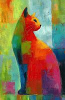 Details: dieren schilderij, kat schilderij, abstract schilderij, moderne kunst, kleurrijke kat, levendige kleuren, cats, abstract, huisdieren, kunst