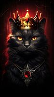 Een vurig zwart kattensilhouet dat oplost in gloeiende oranje en rode vlammen tegen een donkere achtergrond, die intense hitte en vernietiging belichaamt.