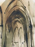Kunst van aquarel en bamboe-pen op aquarelpapier van het transept van een kathedraal.