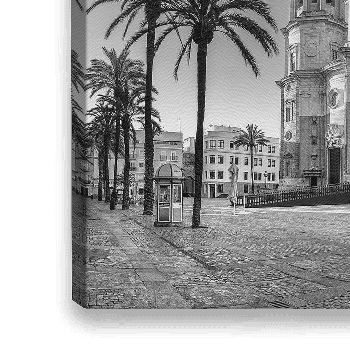 Kerk van de oude stad Cádiz in Spanje in zwart-wit.