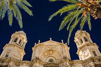 De kathedraal van Cadiz, Andalusië-Spanje heeft markante torens .