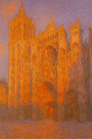 Koop dit landschapskunstwerk Kathedraal van Rouen bij zonsondergang - Monet-geïnspireerde vurige impressionist van Travel Shop op canvas, aluminium dibond, (ingelijste) fotoprint, behang en ArtFrame, op maat geprint in Fine-Art kwaliteit.