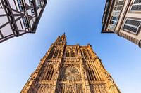 De kathedraal van Straatsburg en vakwerkhuizen in de historische oude binnenstad van Straatsburg in de Elzas, Frankrijk