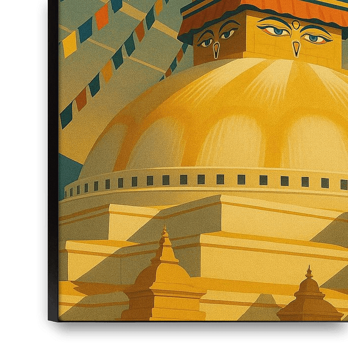 Koop dit landschapskunstwerk Kathmandu Eeuwige Stupa - Art Deco Himalaya Poster van Travel Shop op canvas, aluminium dibond, (ingelijste) fotoprint, behang en ArtFrame, op maat geprint in Fine-Art kwaliteit.