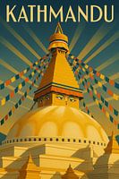 Kathmandu Eeuwige Stupa - Art Deco Himalaya Poster van Travel Shop