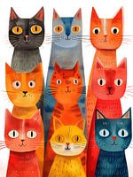 "Katten Familie" is een kleurrijke digitale expressie van kattige charisma's. Dit kunstwerk toont een reeks gestileerde katten in een variëteit van levendige kleuren, van diep blauw tot vurig oranje. Elke kat heeft zijn eigen unieke patroon en persoonlijkheid, maar samen vormen ze een harmonieus geheel. Het speelse ontwerp en de schattige uitstraling maken dit kunstwerk ideaal voor kattenliefhebbers van alle leeftijden. Of het nu om een modern appartement of een gezellige studeerkamer gaat, "Katten Familie" brengt leven, kleur en een snorhaar van vreugde in elke ruimte.