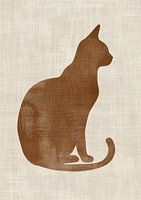 Katten Schilderij - Dit katten schilderij toont een gestileerde afbeelding van een kat gezien vanaf de zijkant. De kat is afgebeeld zittend, met zijn kop naar voren gericht waarbij zijn oren scherp naar boven wijzen, waardoor een alerte en waakzame houding wordt gesuggereerd. De illustratie is uitgevoerd in een monochrome stijl, voornamelijk in diepe bruine tinten wat een rustige en warme uitstraling geeft. De achtergrond heeft een lichte canvas textuur die het geheel een klassiek gevoel geeft, alsof dit kunstwerk op linnen is geschilderd. Deze minimalistische en elegante benadering is wat dit kattenschilderij onderscheidend maakt en het zou passen in een variëteit aan interieur stijlen, van modern tot meer traditioneel.