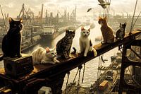 Over ‘Katten in havenomgeving op balk’ van Imperial Art House