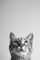 Dit prachtige zwart-wit portret van een kat legt de gratie en mysterieuze charme van het dier perfect vast. Met zijn intense ogen en zachte uitdrukking straalt de kat zowel kalmte als levendigheid uit. Dit gedetailleerde en minimalistische kunstwerk is ideaal voor liefhebbers van decoratieve kunst en kattenliefhebbers en geeft elke kamer een elegant en stijlvol tintje.