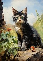 Schilderachtige afbeelding van een donkere kat omringd door planten.
