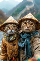 Katten selfie bij de Grote Muur - grappige katten van Poster Art Shop