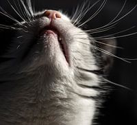 Waar blijft mn eten? Kattensnoet gaat omhoog om te kijken waar het eten blijft....