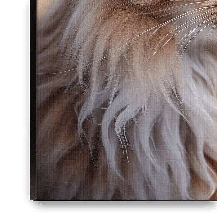 Op de foto zie je het portret van een langharige kat, waarvan alleen het hoofd te zien is. De blik van de kat is indringend, als twee fonkelende smaragden die diep in de ziel kunnen kijken. De ogen stralen een mengeling van nieuwsgierigheid en wijsheid uit, alsof de kat de geheimen van het universum kent. De weelderige manen omlijsten…