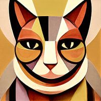 Een modern en abstract portret van een kat., gechilderd in prachtige aardetinten.