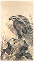 Kawanabe Kyōsai (1831-1889) was een invloedrijke Japanse kunstenaar uit de 19e eeuw, bekend om zijn veelzijdige talenten in schilderen, kalligrafie en karikatuur. Zijn onconventionele en vaak humoristische stijl drukte zowel traditionele als moderne thema's uit en leverde een belangrijke bijdrage aan de Japanse kunstgeschiedenis. Kyōsai wordt vaak beschouwd als een van de laatste belangrijke kunstenaars van de Edo-periode en een voorloper van de moderne Japanse kunst.