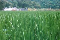 Kecheopalri India Kecheopalri holy lake in the midst of the Sikkimese Himalaya's. Also known as wishing lake. Surrounded by marsh reeds and their accompanying spiders the lake is holy for both Buddhists and Hindu's alike. In the distance Buddhist prayer flags colour the lakeside.