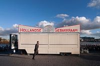 Op de achtergrond de Hollandse Gebakkraam die daar in het seizoen staat.