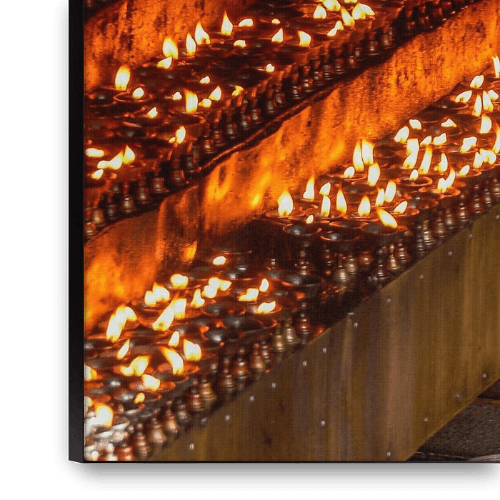 Candles in the Jokhang Temple in Lhasa, Tibet. The temple assistants make sure that the lights - representing enlightenment, wisdom and the light of the Buddha - keep burning.