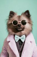In een glinsterende paarse outfit en chique strik draagt deze Keeshond de houding van glamour en stijl. Met een zonnebril die zijn schattige, pluizige gezicht en oren benadrukt, straalt hij charisma en zelfvertrouwen uit. Deze trendy viervoeter ziet er klaar uit voor het volgende grote avontuur - in echte casual jet-setter stijl!
