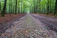 Keienpad in het bos van de Hondsrug, boswachterij Gieten en Borger in de provincie Drenthe. Vlakbij het buitencentrum Boomkroonpad ligt dit pad van zwerfkeien. Deze foto is gemaakt in de Herfst van 2021