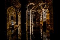 Kerk in Belgie met een half ondergelopen kerk waarbij een fijne spiegeling ontstaat