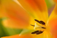 Kelk van een geel met oranje tulp