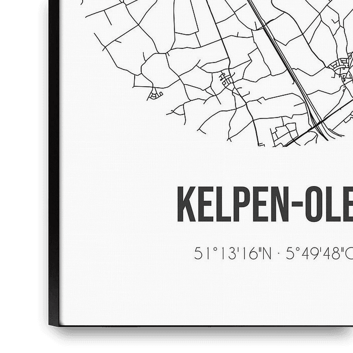 Koop dit abstracte kunstwerk Kelpen-Oler (Limburg) | Landkaart | Zwart-wit van Stad & Wand op canvas, aluminium dibond, (ingelijste) fotoprint, behang en ArtFrame, op maat geprint in Fine-Art kwaliteit.