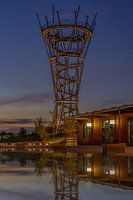 Kempentoren Tilburg gefotografeerd vanuit het Spoorpark bij nacht