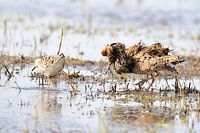 Deze spectaculaire, zeldzame weidevogel broedt in schrale, vochtige, bloemrijke graslanden, vrijwel uitsluitend in reservaten. Kemphanen zijn bekend door de fraaie voorjaarstooi van de mannetjes, die op de toernooiveldjes schijngevechten houden om de gunst van de vrouwtjes. Na de paring draaien de vrouwtjes op voor de zorg om het broedsel. Kemphanen zijn in ons land vooral nog te zien in de trektijd, maar ook wel in de winter. Middelgrote steltloper met veel gedaanten. Typische vorm door relatief groot lichaam, vrij lange hals en middellange, iets omlaag gebogen snavel. Witte vlakken aan staartzijden, weinig opvallende vleugelstrepen. De mannetjes hebben in het voorjaar een opvallende kraag en oorpluimen en zijn zeer divers in kleur en tekening. De kleinere vrouwtjes zijn licht- of donkerbruin en hebben oranje poten.