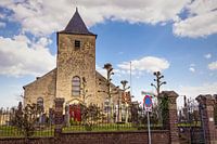 Het kleine kerkje van Oud-Valkenburg gelegen tussen de kastelen Genhoes en Schaloen.