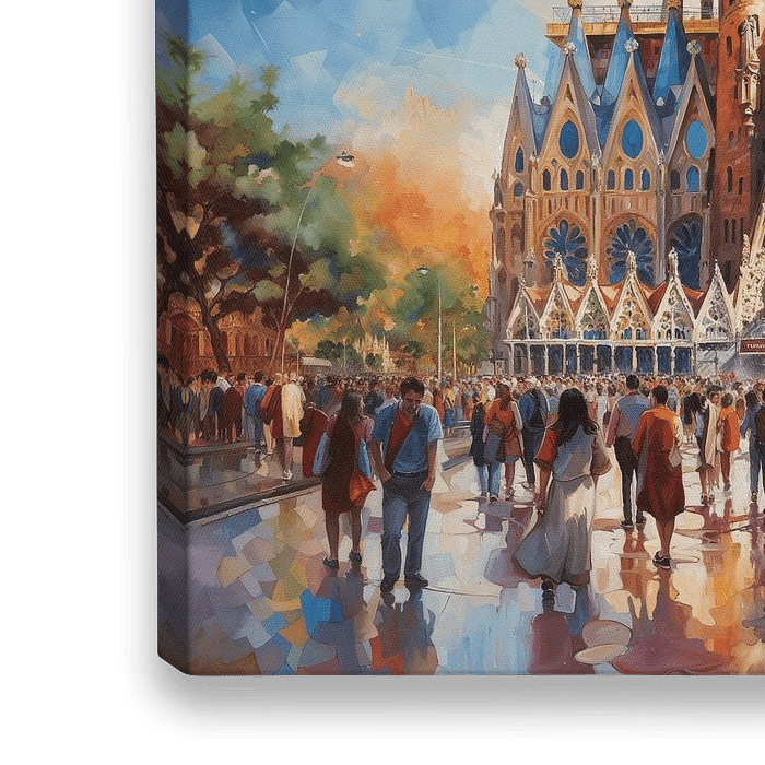 Unieke Kerk Sagrada Familia, Barcelona, Spanje schilderij met een artistieke stijl. Met prachtige kleurtinten en een uniek ontwerp maakt dit tot een stijlvolle fotoprint die prachtig staat in elke ruimte.