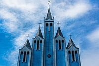 Zeer abstracte en aparte kerktorens in het plaatsje Hevic in Hongarije