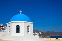 Kerk met blauwe koepel in Oia op het Griekse eiland Santorini