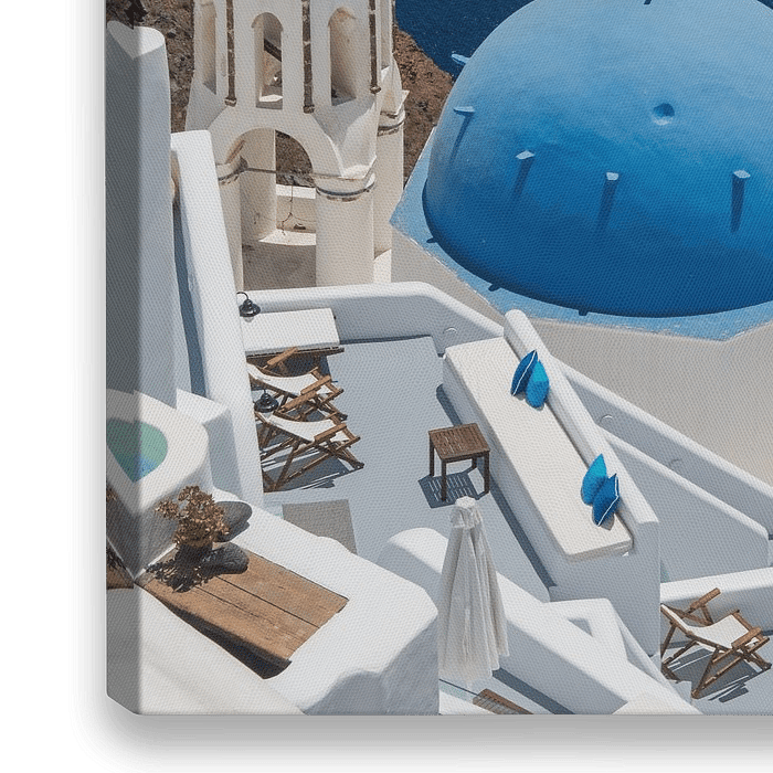 Koop de foto Kerk met Blauwe koepel aan de kust van Santorini van Xulé Bogers als print op canvas, aluminium dibond, (ingelijste) fotoprint, behang en ArtFrame. Voor jou op maat geprint in Fine-Art kwaliteit.