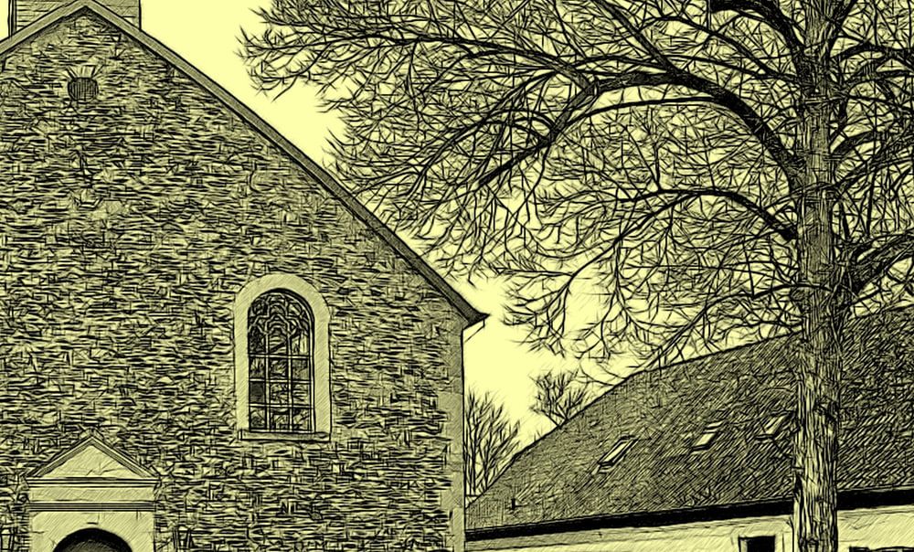 De kerk van Huize Linnep uit 1682 in Ratingen als grafiek.