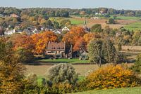 Kerkdorpje Epen omringd door de Zuid-Limburgse heuvels in herfstkleuren