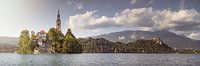 De foto toont het idyllische eiland in het meer van Bled in Slovenië met zijn opvallende kerk, ingebed in een schilderachtig Alpenlandschap. Het helderblauwe water en de majestueuze bergen op de achtergrond creëren een harmonieuze en vredige sfeer. Dit motief is ideaal voor reisbrochures, ansichtkaarten of reclame op het gebied van natuur- en cultuurtoerisme. Het roept emoties op zoals verwondering, rust en een verlangen om dit adembenemende landschap te ontdekken. Een perfect beeld voor liefhebbers van natuur en architectuur.