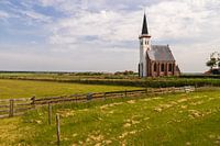 Het prachtige markante kerkje van Den Hoorn op Texel. Dit kerkje is 1 van de meest gefotografeerde objecten op het eiland. Toch wilde ik wilde hem zelf ook graag op de foto zetten en koos voor deze compositie, de mooie lucht werkte zeker mee aan dit beeld en ik ben zeer tevreden met het resultaat en hoop dat deze foto een mooi plekje bij u aan de muur verdiend.