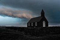 Kerkje in IJsland . Een mooie poëtische sfeer met dramatische wolken brengen een bijzondere sfeer in uw huis .