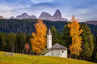Midden in Trentino, Italië, tussen de pieken van de Dolomieten ligt het kleine dorpje Paneveggio. Op een weiland ligt het mooie witte kerkje, geflankeerd door enkele berkenbomen.