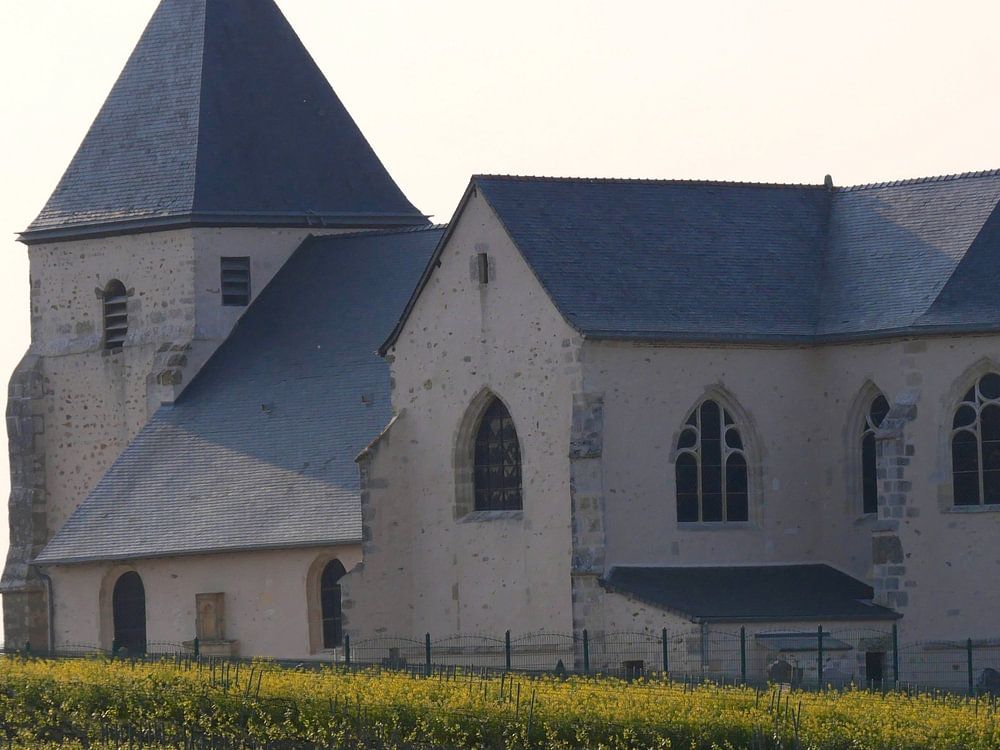 Een mooi kerkje in de Champangestreek in Frankrijk, in al zijn eenvoud tussen de wijnvelden. De wijnranken staan op de voorgrond. Een dromerige sfeer voor de wijnliefhebber.