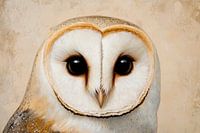 Met een doordringende blik die de geheimen van de nacht lijkt te onthullen, straalt de nachtjager een mystieke kalmte uit. Zijn zacht gebogen oogkroon en vederlichte gezicht stralen zowel gratie als wijsheid uit. De harmonieuze bruintinten spelen subtiel met de delicate achtergrond, die de details van het verenkleed perfect accentueert.